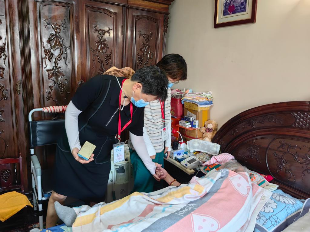 76歲的劉爺爺腦溢血后部分肢體偏癱,同時患有一些基礎(chǔ)性老年病。“要先測量老人生命體征是否平穩(wěn),再進(jìn)行助浴,其間也要隨時關(guān)注老人的狀態(tài)?!彼f。