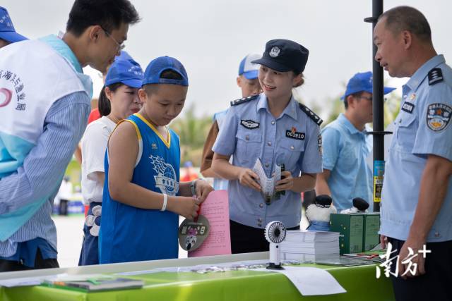 保護(hù)紅樹林生態(tài)系統(tǒng)國際日,民警們?cè)谡拷袇^(qū)擺攤,科普紅樹林保護(hù)知識(shí)。