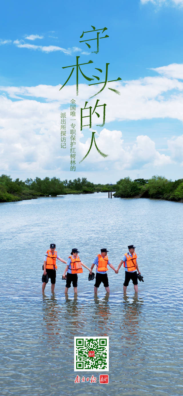扎根,紅樹林以這樣的方式與大地糾纏牽絆;楊健宏、吳八、李明霖、侯小嬪4名民警則把根扎在了紅樹林,成為了守木頭的人。