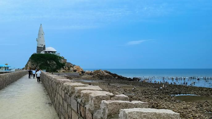 孫雪:這里的空氣比較清新,海的環(huán)境也不錯,很寬闊很藍,我們大人喜歡拍照,小孩子就在這里趕海。