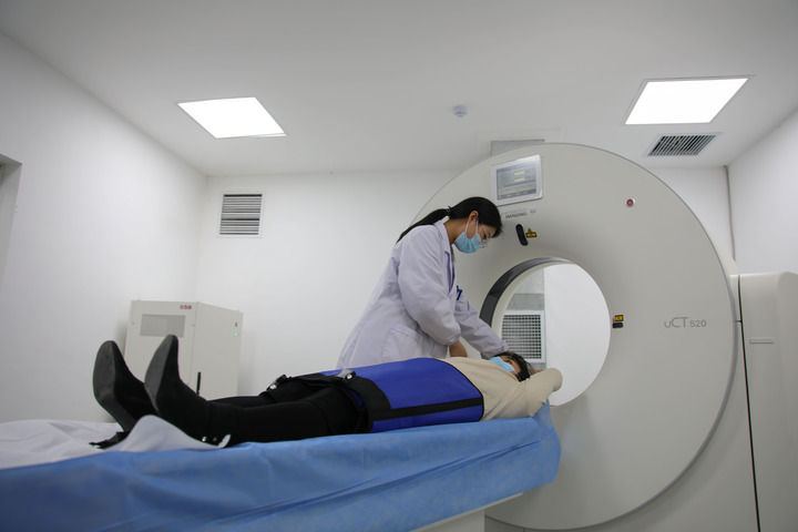 2023年3月2日,安徽省合肥市包河區(qū)煙墩街道社區(qū)衛(wèi)生服務(wù)中心的醫(yī)護人員為患者進行CT檢查。 新華社記者 曹力 攝