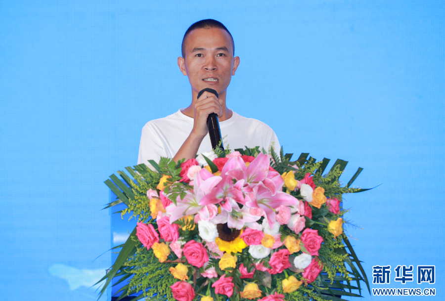 嚴(yán)紅忠在分享“華仙大媽”普法視頻“出圈”的經(jīng)驗做法(攝于8月22日)。新華網(wǎng)發(fā)(供圖)