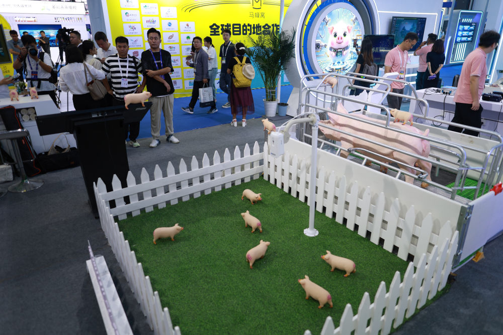 8月28日,觀展者在2024中國國際大數(shù)據(jù)產(chǎn)業(yè)博覽會現(xiàn)場參觀智能生豬全產(chǎn)業(yè)鏈數(shù)智化服務(wù)總平臺模型。