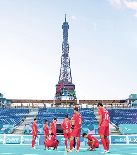 8月27日晚,中國盲人足球隊抵達巴黎殘奧會比賽場地,進行適應性訓練。3天后,他們將在這里迎來首場正式比賽,對陣東道主法國隊。