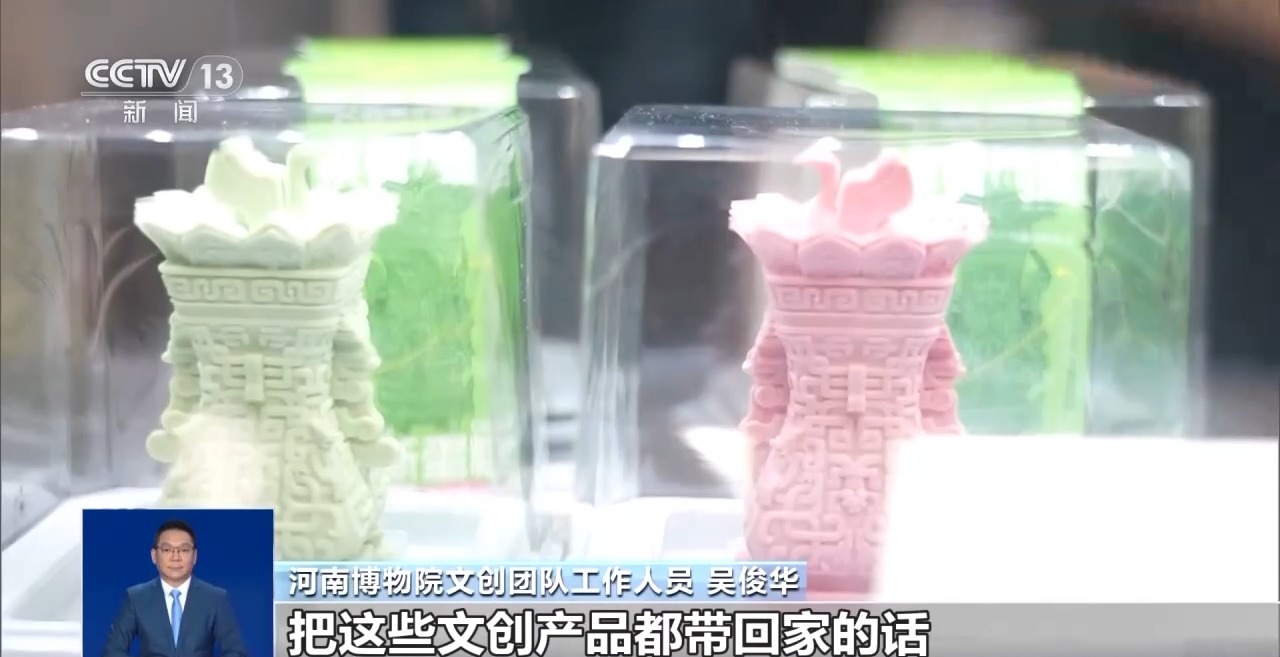 河南博物院文創(chuàng)團隊工作人員 吳俊華:文化是文創(chuàng)的靈魂,創(chuàng)意是文創(chuàng)的生命,把這些文創(chuàng)產(chǎn)品都帶回家的話,等于說把一座小型的博物館帶回去了,其實這就是讓文物“活”起來。