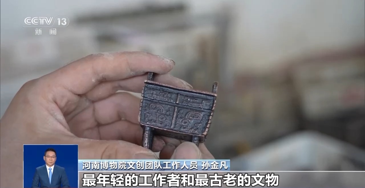 河南博物院文創(chuàng)團隊工作人員 孫金凡:做成的時候感覺很有成就感,最年輕的工作者和最古老的文物,我覺得我這對CP組得還真的挺不錯的。