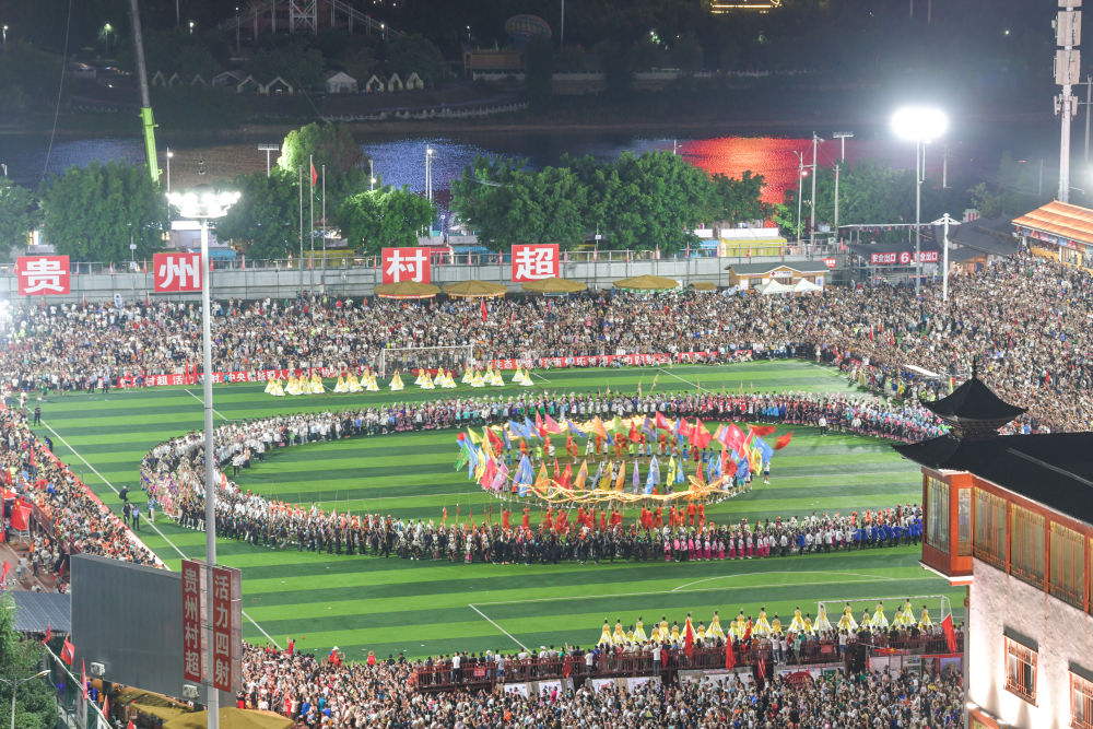 這是7月20日拍攝的2024年貴州“村超”總決賽文藝表演。新華社記者 楊文斌 攝