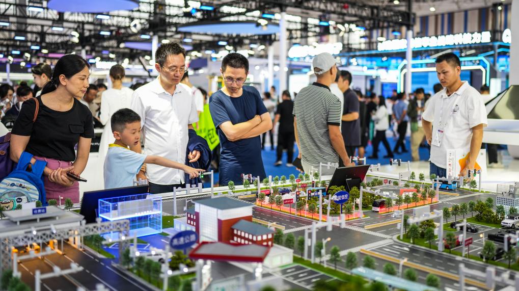 8月28日,觀展者在2024中國國際大數據產業(yè)博覽會會場參觀智慧交通系統(tǒng)。新華社記者 陶亮 攝
