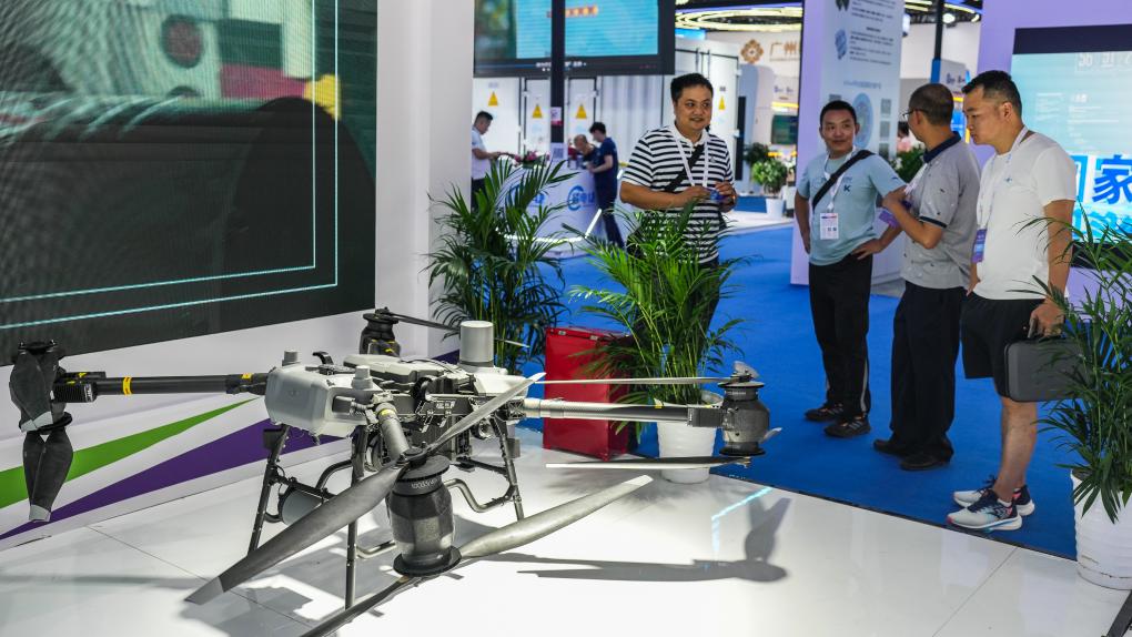 8月28日,觀展者在2024中國國際大數據產業(yè)博覽會會場參觀新型智能無人機。 新華社記者 陶亮 攝