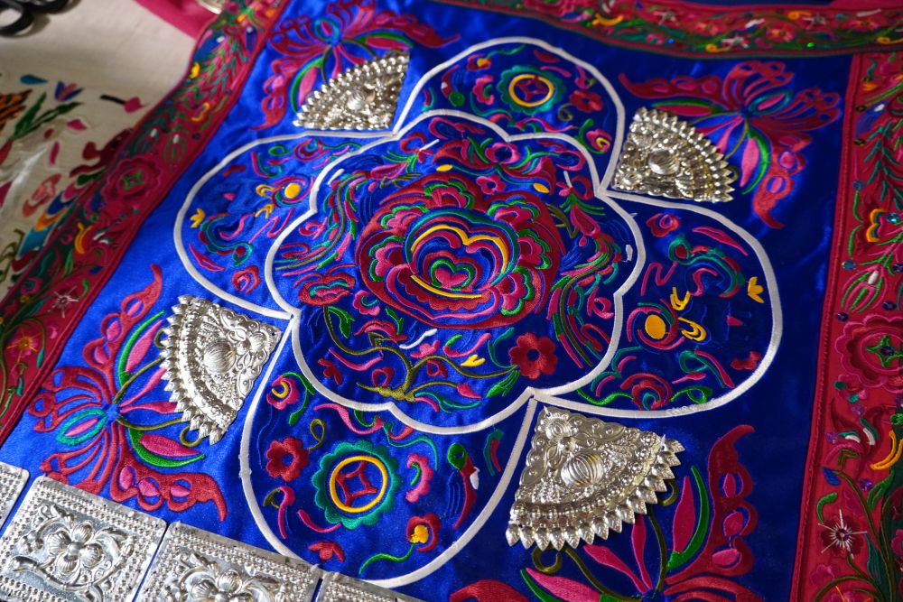 另一珍品是有“穿在身上的侗族文明史”之稱的侗族刺繡。在永濟(jì)橋上,31歲的覃桂珍正和兩位繡娘為手中的侗繡新作忙碌。作為集紡織、印染、剪紙、刺繡于一體的傳統(tǒng)工藝,侗繡技藝延綿千年,已被列入國家級(jí)非物質(zhì)文化遺產(chǎn)名錄及國家傳統(tǒng)工藝振興目錄。