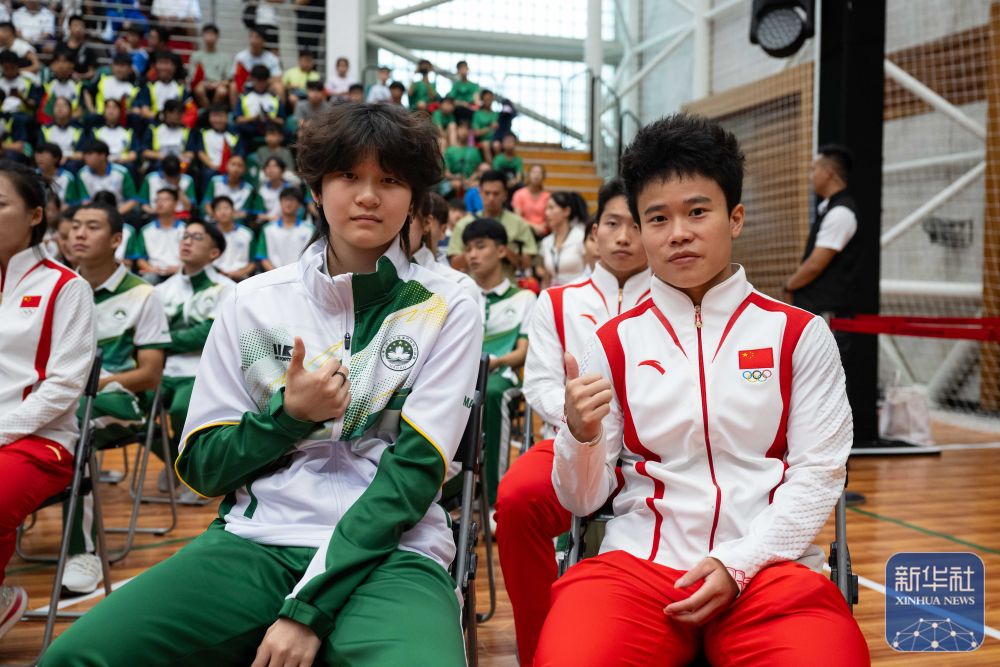 9月1日,內(nèi)地奧運健兒代表團在澳門奧林匹克體育中心室內(nèi)體育館與澳門青少年運動員進行互動交流。