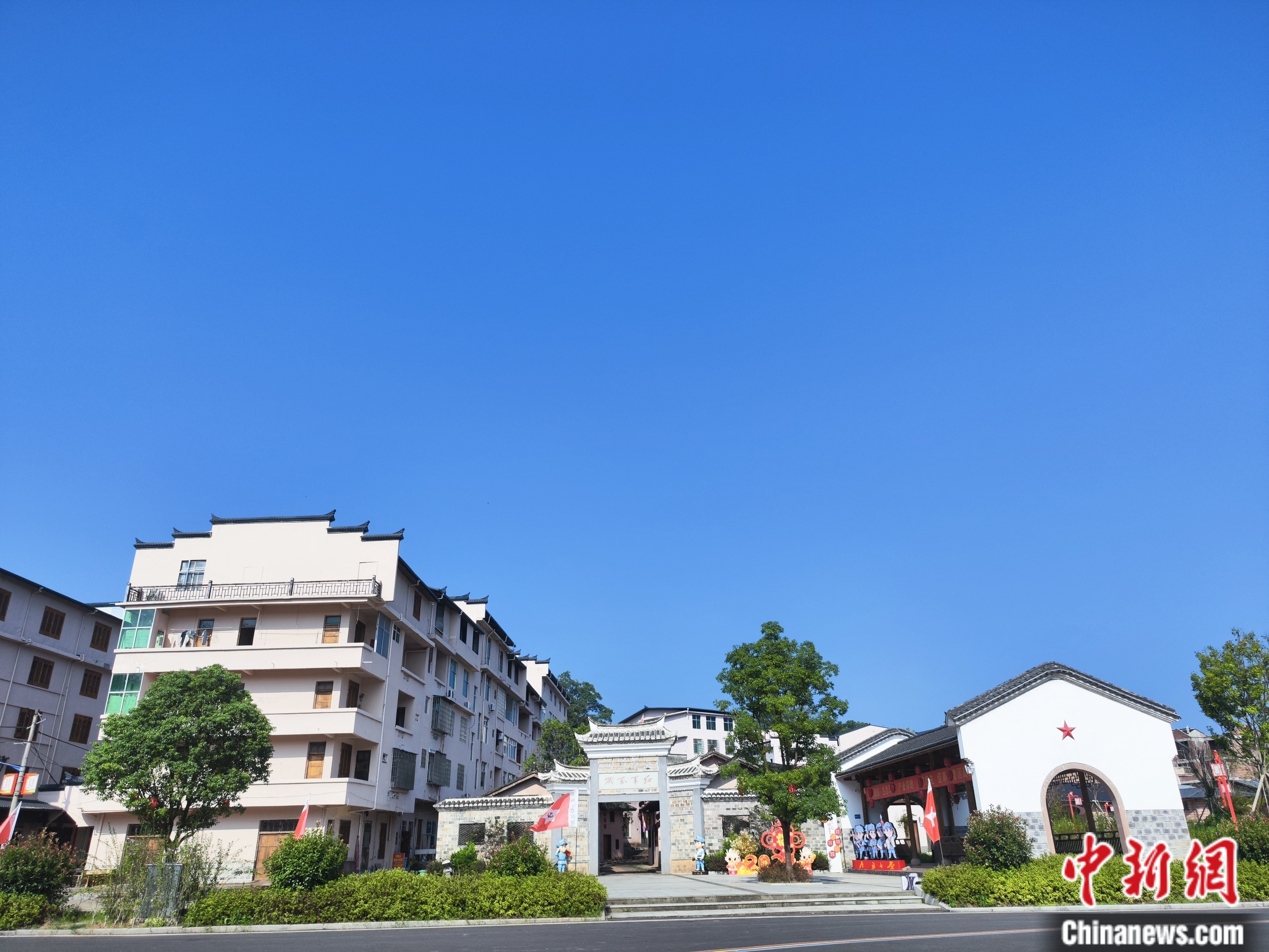 放眼望去,良田美池,碧樹(shù)繁花,阡陌交通,屋舍儼然,長(zhǎng)征主題壁畫(huà)、標(biāo)語(yǔ)隨處可見(jiàn)。而最引人注目的,還是那條長(zhǎng)達(dá)千米的“紅軍街”。