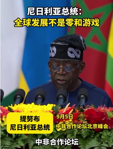 尼日利亞總統(tǒng)提努布5日在中非合作論壇北京峰會(huì)開幕式上說,中非合作論壇以及更廣泛的中非伙伴關(guān)系所取得的成功,表明一個(gè)重要真理:全球發(fā)展不是零和游戲。
