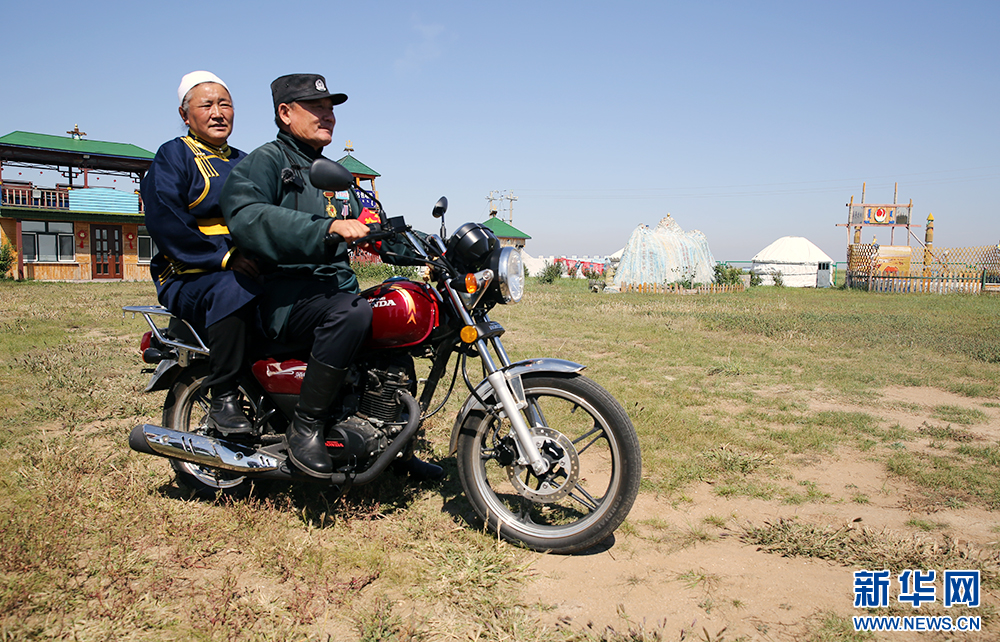 8月27日,圖門(mén)和妻子索麗從院子里騎著摩托車(chē)出發(fā)去巡邊。新華網(wǎng)石毅 攝