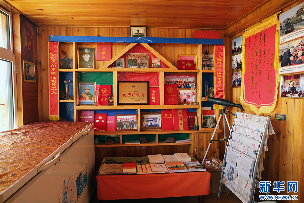 圖門(mén)家墻壁上,擺滿了一家三代戍邊的照片和榮譽(yù)證書(shū)。新華網(wǎng)石毅 攝