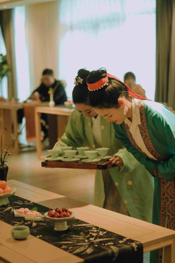徑山茶宴堂設(shè)古雅,程式規(guī)范,主躬客莊,禮儀備至,依時如法,和洽圓融,蘊涵豐富,體現(xiàn)了禪院清規(guī)和禮儀、茶藝的完美結(jié)合,具有品格高古、清雅絕倫的獨特風格,堪稱中國禪茶文化的經(jīng)典樣式。