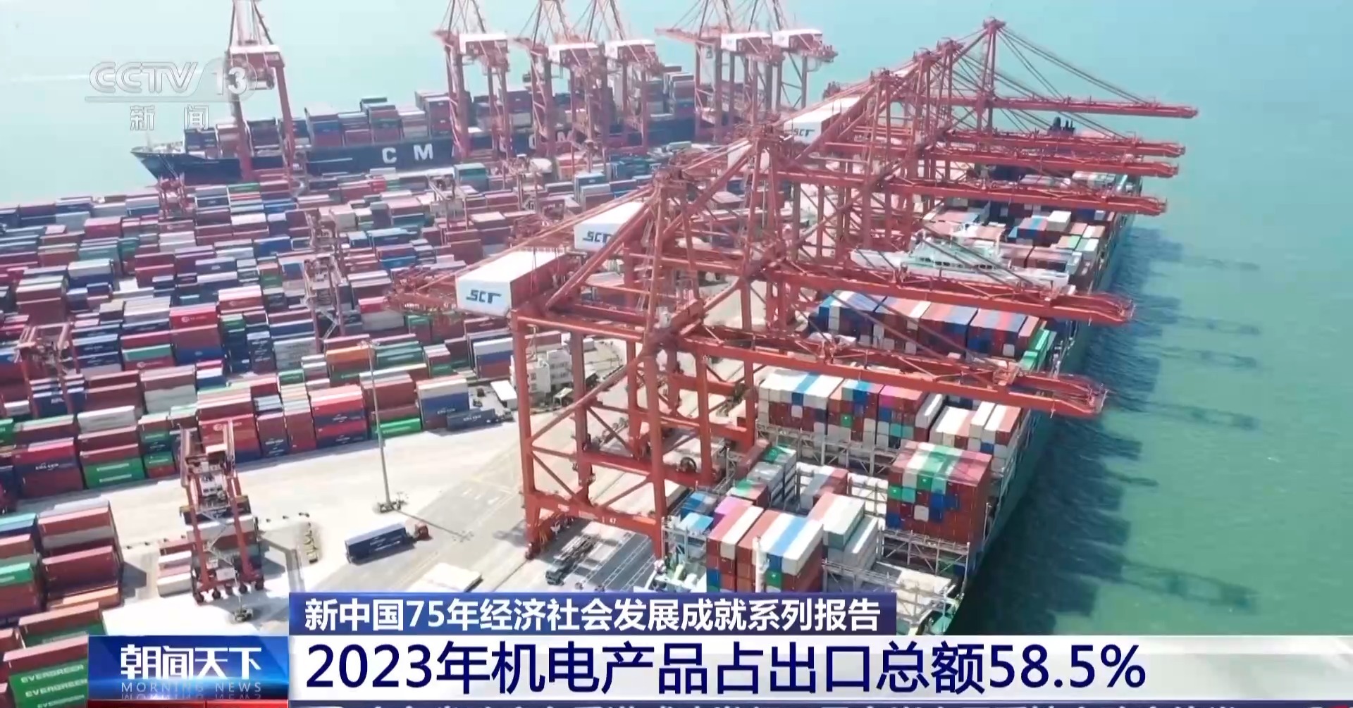 2023年,機(jī)電產(chǎn)品在出口總額中占比達(dá)58.5%,其中,汽車(chē)出口522萬(wàn)輛,我國(guó)首次成為全球第一大汽車(chē)出口國(guó)。