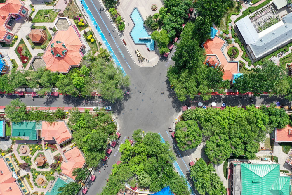 從空中俯瞰六星街,映入眼簾的是一片綠樹(shù)成蔭、紅瓦藍(lán)墻的正六邊形街巷。六星街始建于20世紀(jì)30年代,街巷內(nèi)居住著漢族、維吾爾族、哈薩克族等13個(gè)民族的群眾,是新疆多民族和諧共處、多元文化交織交融的一個(gè)縮影。