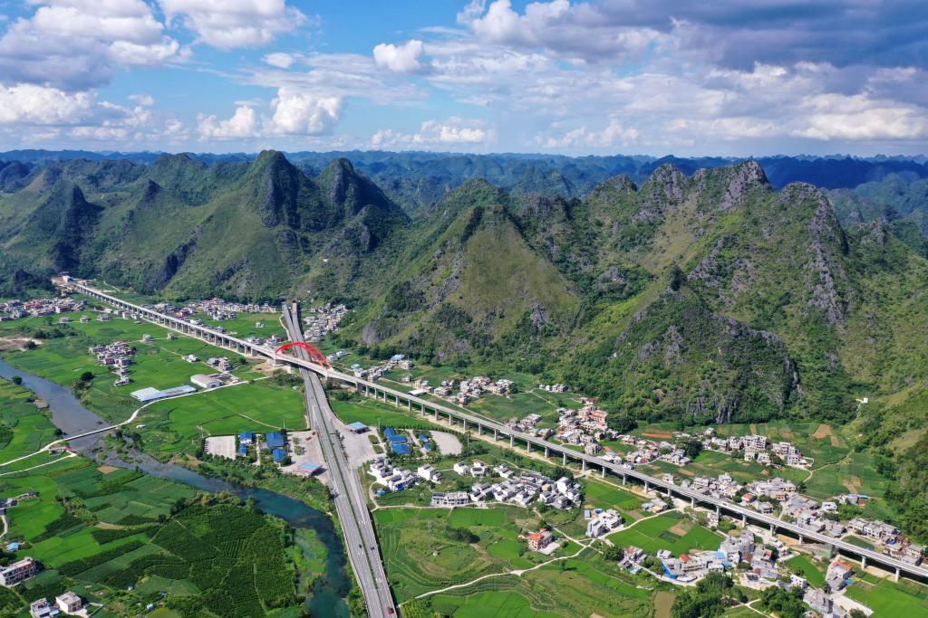 這是廣西都安瑤族自治縣境內的交通路網(2021年8月31日攝,無人機照片)。新華社記者 陸波岸 攝