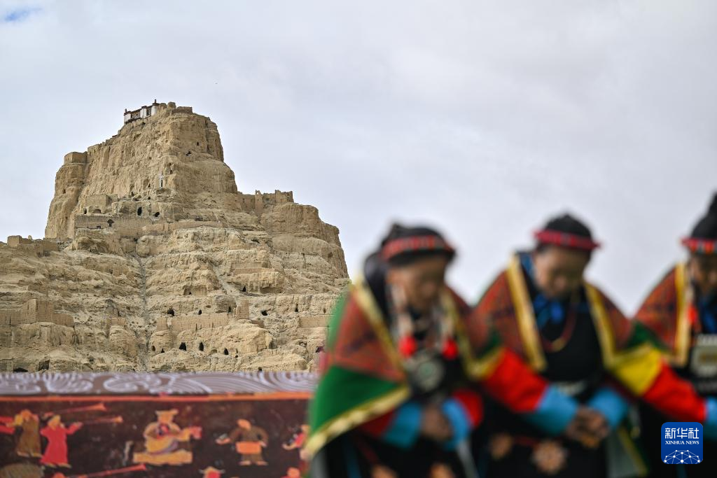 在西藏阿里地區(qū)札達縣古格王國遺址腳下,當(dāng)?shù)卮迕癖硌荨靶琛保?月11日攝)。
