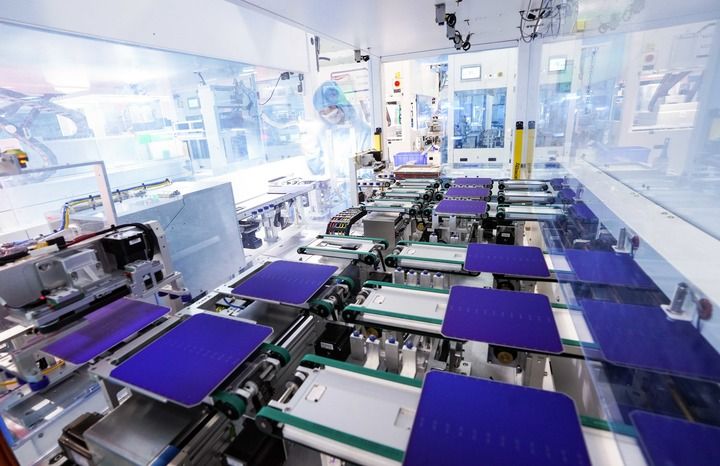 這是安徽華晟新能源科技股份有限公司的異質(zhì)結(jié)光伏電池及組件工廠內(nèi)景(8月24日攝)。