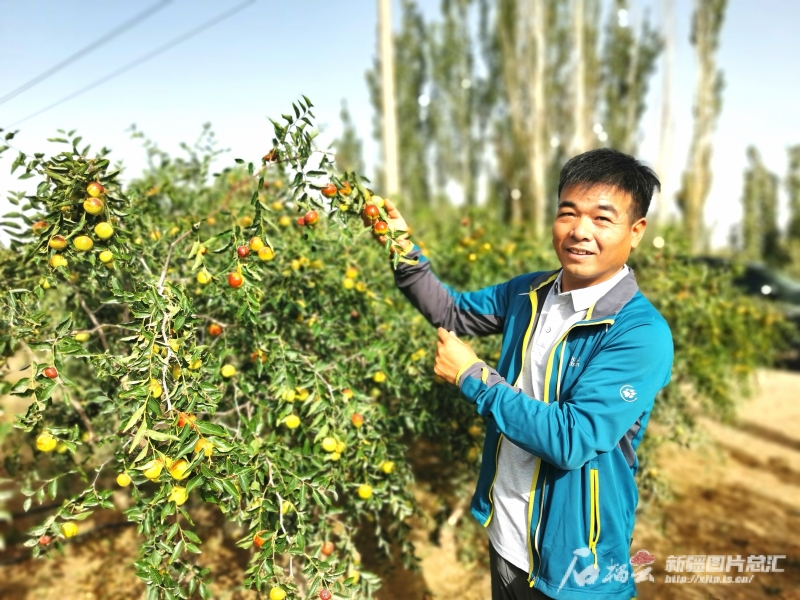 2012年渠瑞超在后河壩種植鮮食紅棗,如今已發(fā)展到1000畝的規(guī)模。石榴云/新疆日報記者 曹華攝