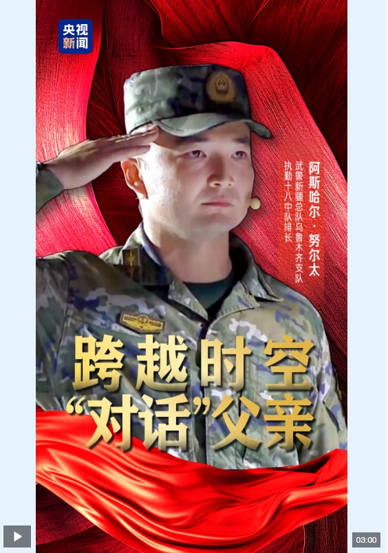 21日晚《把青春華章寫在祖國大地上》大思政課網(wǎng)絡(luò)主題活動(dòng)現(xiàn)場(chǎng),投筆從戎的南開學(xué)子阿斯哈爾 · 努爾太,通過AI技術(shù)穿越時(shí)空與父親對(duì)話。阿斯哈爾獻(xiàn)給父親的一個(gè)軍禮,令無數(shù)人動(dòng)容。