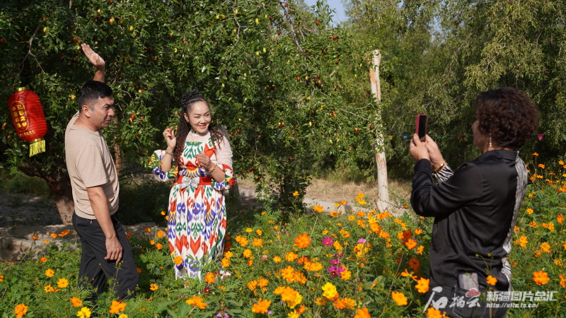 9月21日,吐魯番市托克遜縣博斯坦鎮(zhèn)舉辦喜迎中國(guó)農(nóng)民豐收節(jié)“魅力紅棗情 幸福托克遜”紅棗采摘開(kāi)園儀式。圖為助農(nóng)直播電商在棗園內(nèi)現(xiàn)場(chǎng)直播。宋建澤攝