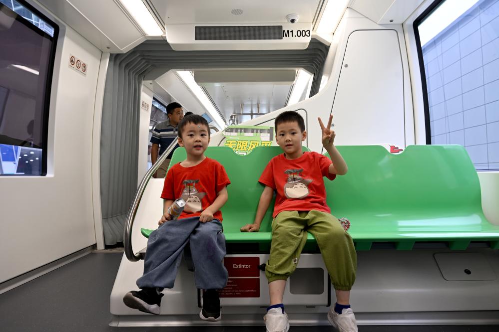 9月21日,在2024世界制造業(yè)大會(huì)上,小朋友體驗(yàn)一款跨座式單軌列車。新華社記者 黃博涵 攝