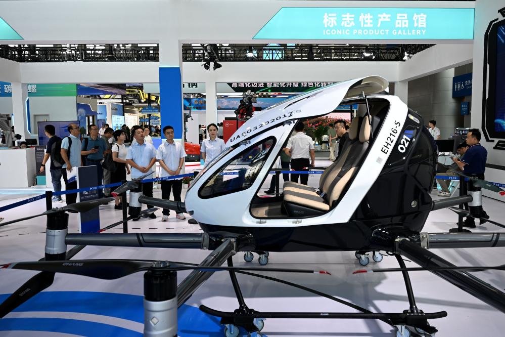9月20日,在2024世界制造業(yè)大會(huì)上,人們了解一款載人級(jí)無(wú)人駕駛電動(dòng)垂直起降航空器。新華社記者 黃博涵 攝
