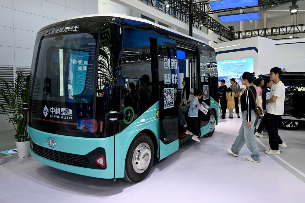 9月21日,在2024世界制造業(yè)大會(huì)上,人們參觀體驗(yàn)一款無人駕駛觀光巴士。新華社記者 黃博涵 攝