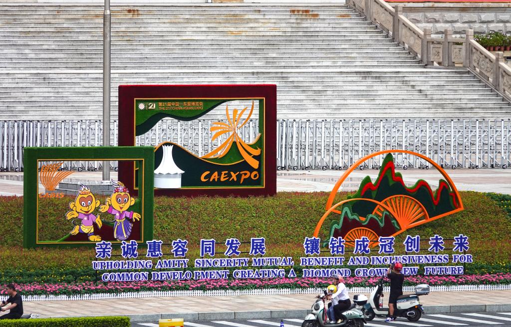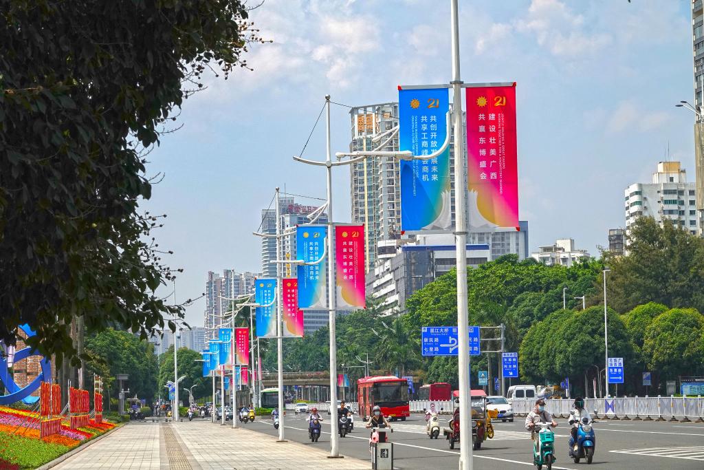 行走在南寧街頭,可見各式東博會和峰會的元素。今年的盛會以“親誠惠容同發(fā)展,鑲鉆成冠創(chuàng)未來”為主題,會期持續(xù)至28日,展覽規(guī)模近20萬平方米,參展企業(yè)超3000家。