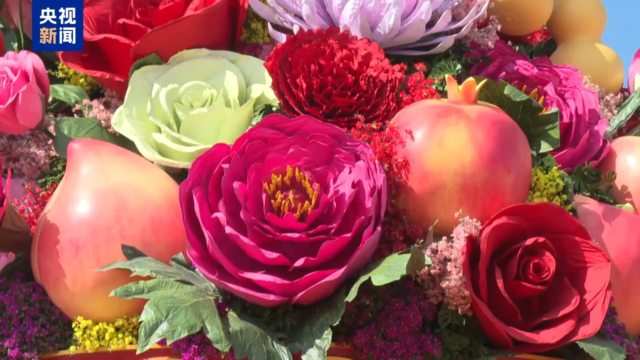 北京市園林綠化局城鎮(zhèn)綠化處二級調(diào)研員 宋學(xué)民:首次增加了蔬菜,變成了蔬果花籃,里面加上了富有吉祥寓意的南瓜、葫蘆,還有紅辣椒,紅紅火火,象征著豐收。再加上蔬菜、水果和鮮花,構(gòu)成了蔬果花籃,寓意繁花似錦,蔬果飄香。