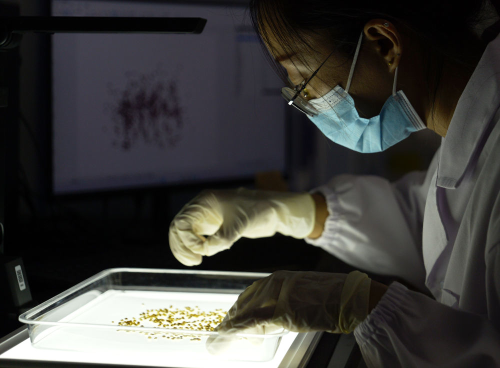 5月16日,中國(guó)農(nóng)科院中原研究中心科研人員在中原農(nóng)谷實(shí)驗(yàn)室內(nèi)進(jìn)行高粱樣品篩選。新華社記者 李嘉南 攝