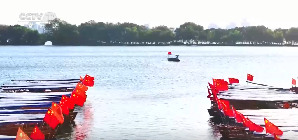 在浙江杭州,西湖上的游船掛起五星紅旗,紅旗與湖水交相輝映,構(gòu)成秋日美麗畫卷;在云南紅河,建水古城裝飾一新,古色古香的建筑在國(guó)旗映襯下別有韻味;在貴州貴陽,多處城市地標(biāo)布置了國(guó)慶主題景觀花壇;在江西南昌,國(guó)慶立體花卉造型“祝福祖國(guó)繁榮昌盛”亮相八一廣場(chǎng),花卉造型由約5萬盆鮮花搭配組成,融入中國(guó)結(jié)、華表、飄帶元素,表達(dá)著人們對(duì)祖國(guó)的深深祝福;在安徽合肥,用花卉、水果打造的大型花籃象征著花團(tuán)錦簇、碩果累累,吸引市民打卡拍照。