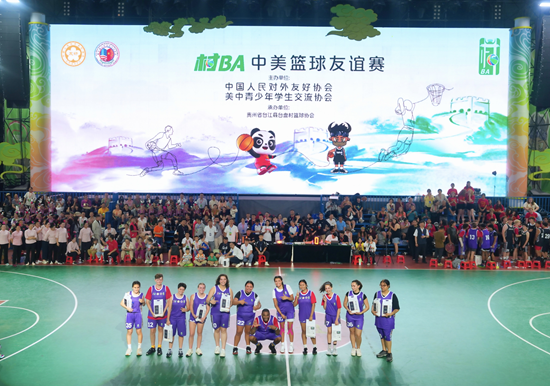 美國青少年球員在“村BA”球場合影。(供圖:貴州省文化和旅游廳)
