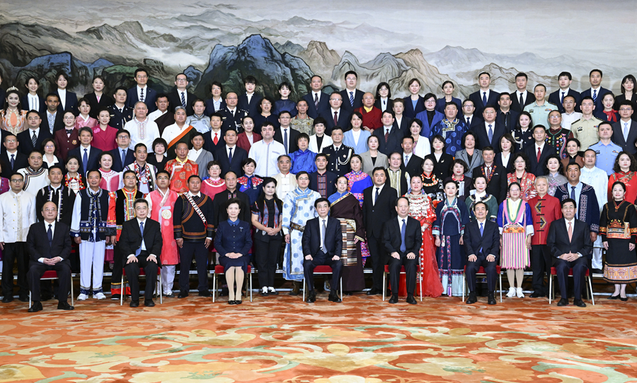 9月29日,中共中央政治局常委、全國(guó)政協(xié)主席王滬寧在北京會(huì)見全國(guó)少數(shù)民族參觀團(tuán)。新華社記者 張領(lǐng) 攝