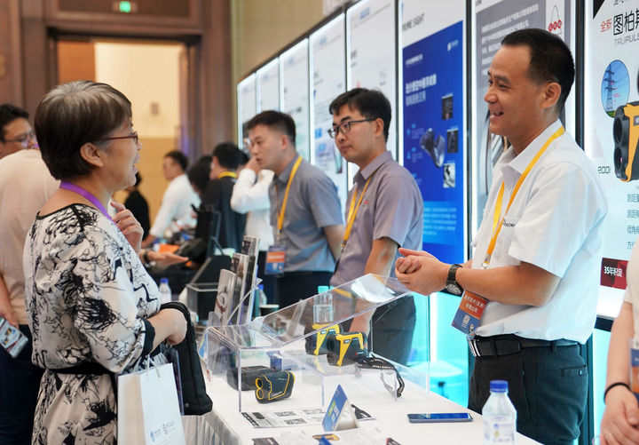 2024年8月8日,在上海舉行的第七屆進(jìn)博會(huì)技術(shù)裝備、汽車展區(qū)展前供需對(duì)接會(huì)現(xiàn)場,展商工作人員(右)向采購商介紹企業(yè)產(chǎn)品。新華社發(fā)(陳浩明 攝)