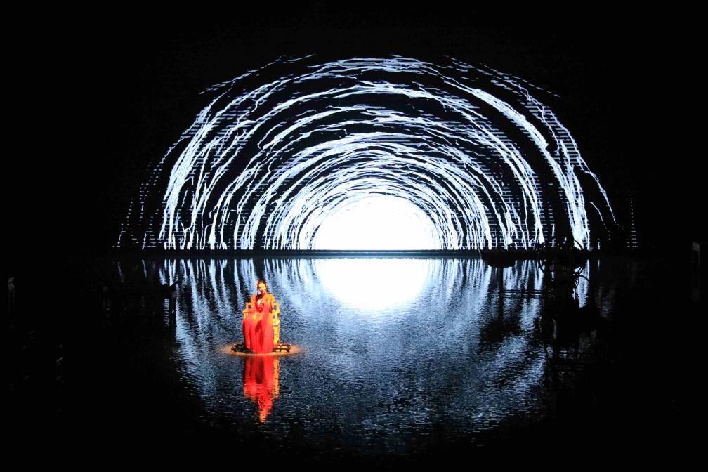 36扇高大的雕花木門(mén)輕啟,演員曼妙起舞;舞臺(tái)上光影變幻,不時(shí)落下層層水簾……“太震撼了!”觀眾們不約而同發(fā)出感嘆。