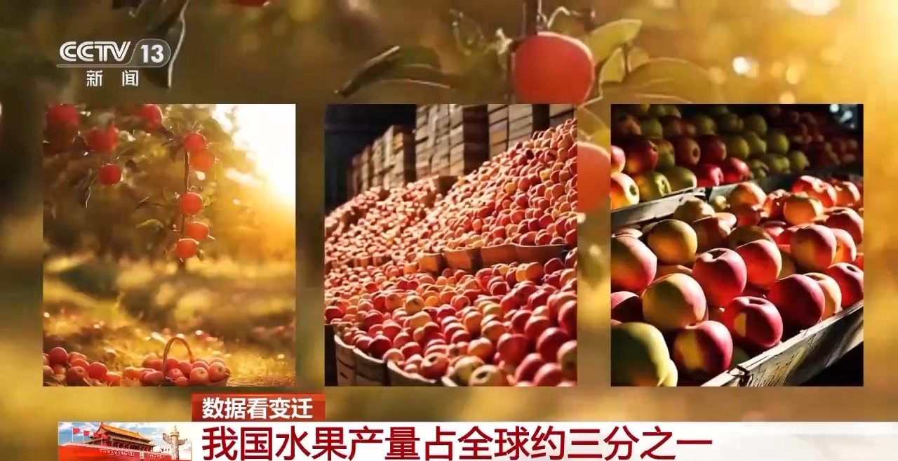 數(shù)據(jù)看變遷,關(guān)注老百姓餐桌上的尋常物——水果。75年間,水果從老百姓餐桌上的稀客變成日常飲食中尋常的“小伙伴”,我國(guó)已成為全球最大的水果生產(chǎn)國(guó)和消費(fèi)國(guó),水果產(chǎn)量占到了全球的約三分之一。