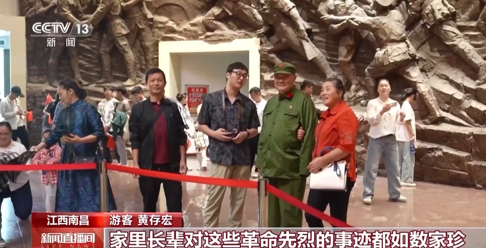 游客 黃存宏:和家人特意來八一起義紀(jì)念館,家里長輩對革命先烈的事跡如數(shù)家珍,來參觀也是一個緬懷,也是完成自己的一份心愿,我們也計劃把當(dāng)?shù)氐募t色景點(diǎn)都逛一遍。