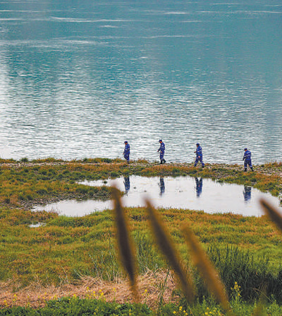 四川宜賓的巡護隊員正在長江邊的一處魚類產卵地進行巡護。莊歌爾攝(人民視覺)