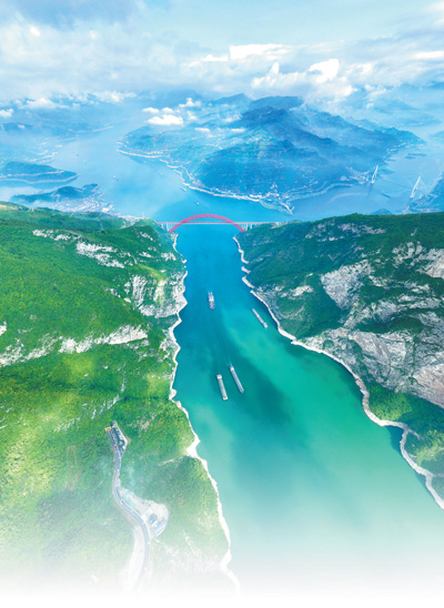 綠色轉型,高質量發(fā)展動能澎湃。黃金水道暢通低碳,今年前7月長江干線港口完成貨物吞吐量超22億噸,純電動游輪往來穿梭、綠色港口點綴其間?!熬G色引擎”更加強勁,烏東德、白鶴灘、溪洛渡、向家壩、三峽、葛洲壩6庫聯(lián)調,1滴長江水發(fā)6次電,世界最大清潔能源走廊總裝機容量達7169.5萬千瓦。創(chuàng)新引領綠色發(fā)展,現(xiàn)代產業(yè)集群快速壯大,新動能新優(yōu)勢積極塑造發(fā)展。