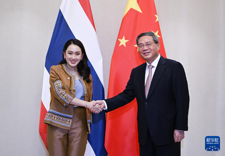 當(dāng)?shù)貢r(shí)間10月10日,國(guó)務(wù)院總理李強(qiáng)在萬(wàn)象出席東亞合作領(lǐng)導(dǎo)人系列會(huì)議期間會(huì)見(jiàn)泰國(guó)總理佩通坦。新華社記者 張領(lǐng) 攝