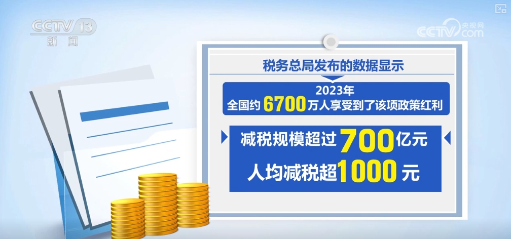 稅務(wù)總局發(fā)布的數(shù)據(jù)顯示,2023年,全國約6700萬人享受到了該項政策紅利。減稅規(guī)模超過700億元,人均減稅超1000元。其中,子女教育、贍養(yǎng)老人和3歲以下嬰幼兒照護(hù)減稅分別約360億元、290億元和50億元。