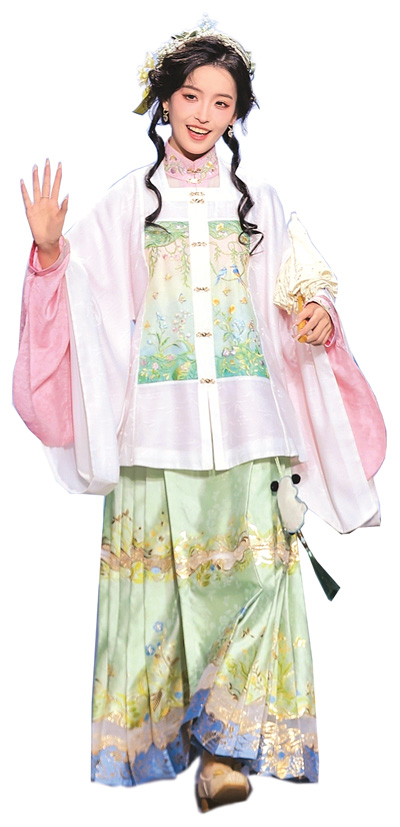 “除馬面裙外,目前市面上由宋制服裝中的褙子改良而來的服裝樣式也很受歡迎,明制服裝中的立領則被大量應用于新中式服裝?!贝饔昵缯f,如今的漢服已兼具傳統文化和流行時尚的雙重屬性。