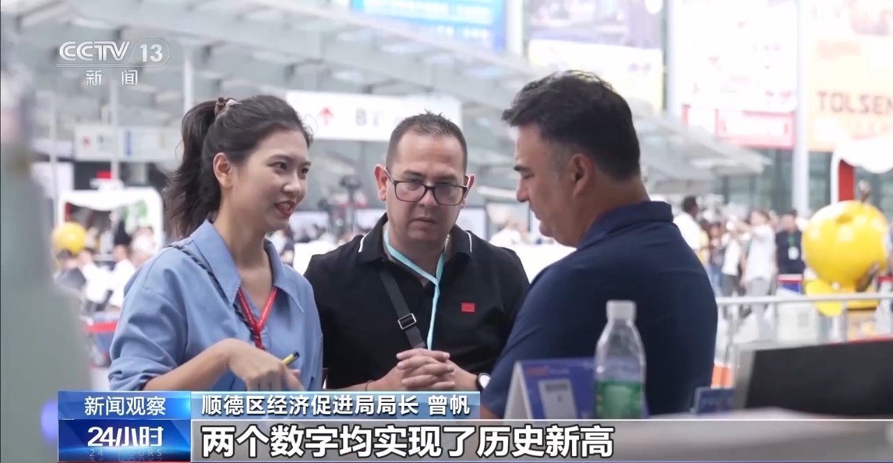 順德區(qū)經(jīng)濟促進局局長 曾帆:今年1至9月,順德外貿(mào)進出口總額達到1741.9億元,其中家電產(chǎn)品的出口實現(xiàn)雙位數(shù)增長。這一次廣交會順德參展企業(yè)319家,展位數(shù)量870個,兩個數(shù)字均實現(xiàn)了歷史新高。