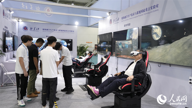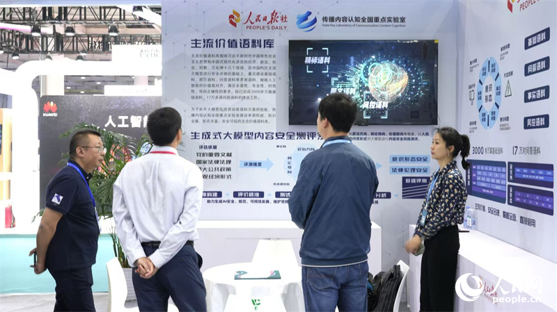 人民日報社傳播內容認知全國重點實驗室展區(qū)吸引眾多觀眾駐足了解。人民網記者 吳茜薇攝