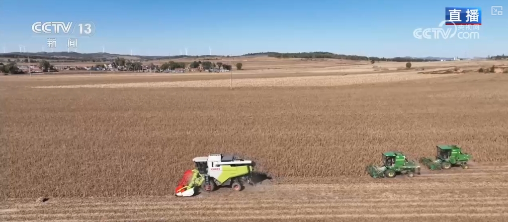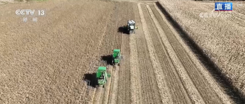 央視網消息:金秋十月,五谷豐登。金燦燦的玉米、沉甸甸的麥穗,在廣闊的良田里,農民臉上洋溢著豐收的喜悅,流“金”沃野奏響著豐收“歡歌”。