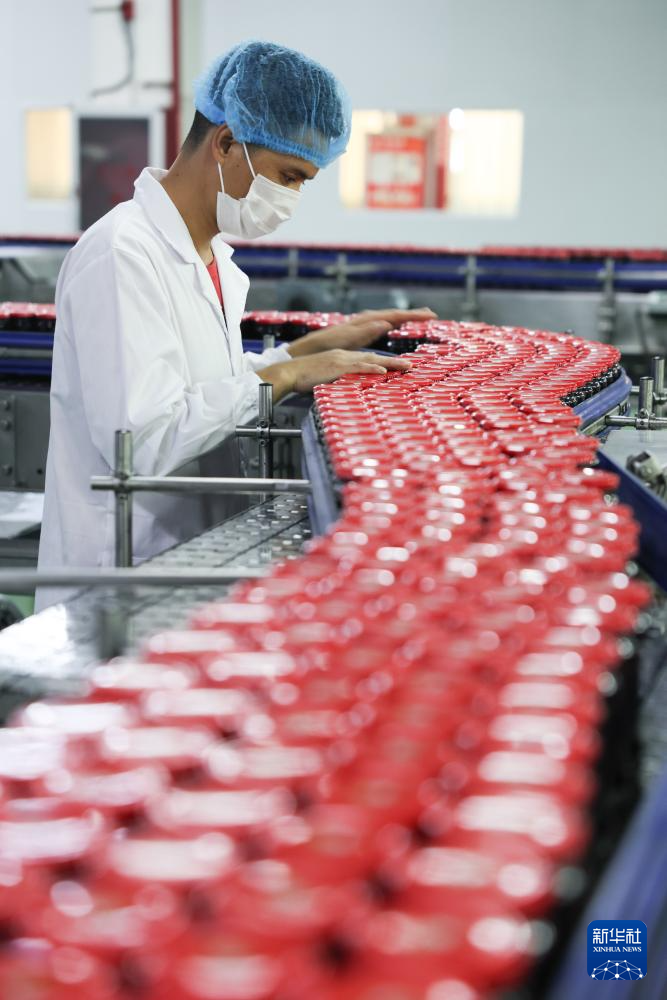 用于制作辣椒醬的黃豆在生產(chǎn)線上被精選出來(lái)(8月22日攝)。新華社記者 劉續(xù) 攝